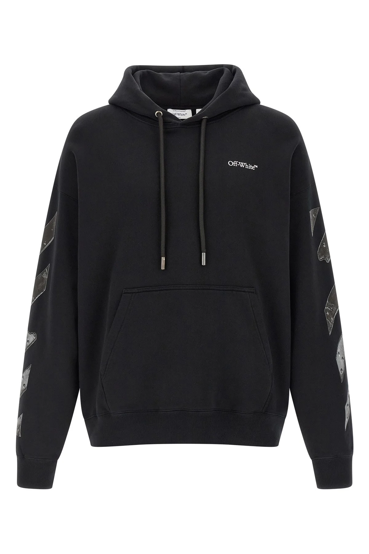 cod. OMBB085S26FLE00100010001 Brushed cotton hoodie with front logo print, 'Metal Arrow Skate' print on the sleeves and back, kangaroo pocket, long sleeves with cuffs and dropped shoulders, band on the hem. Color: Black Size & Fit: oversized fit Composition: 100% cotton Made in: Portugal