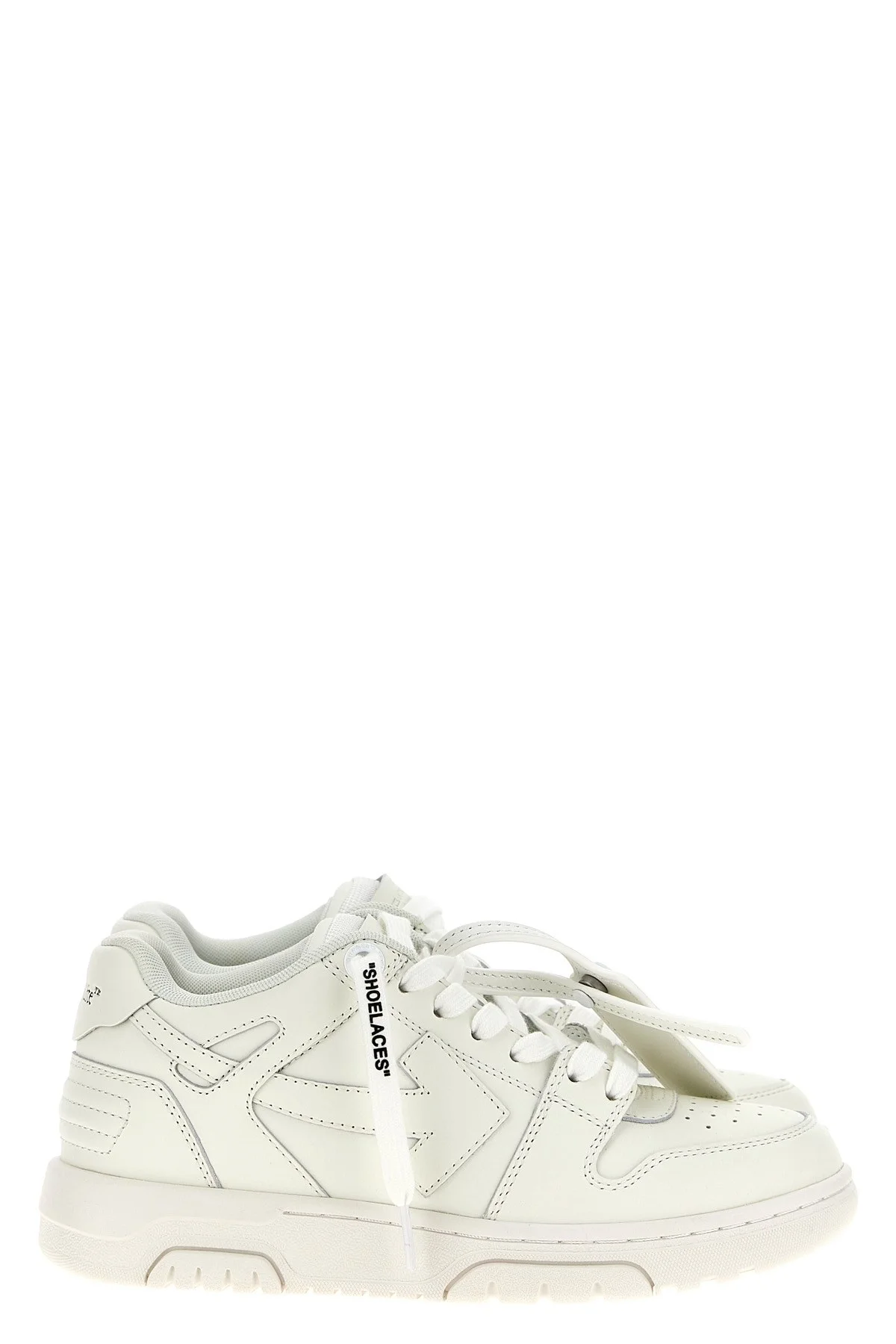 cod. OWIA259C99LEA00801010101 'Out Of Office' leather sneakers, logo tag, lace-up closure, rubber sole. Color: White Size & Fit: EU WOMEN Composition: 89% bovine leather 11% recycled polyester Made in: China