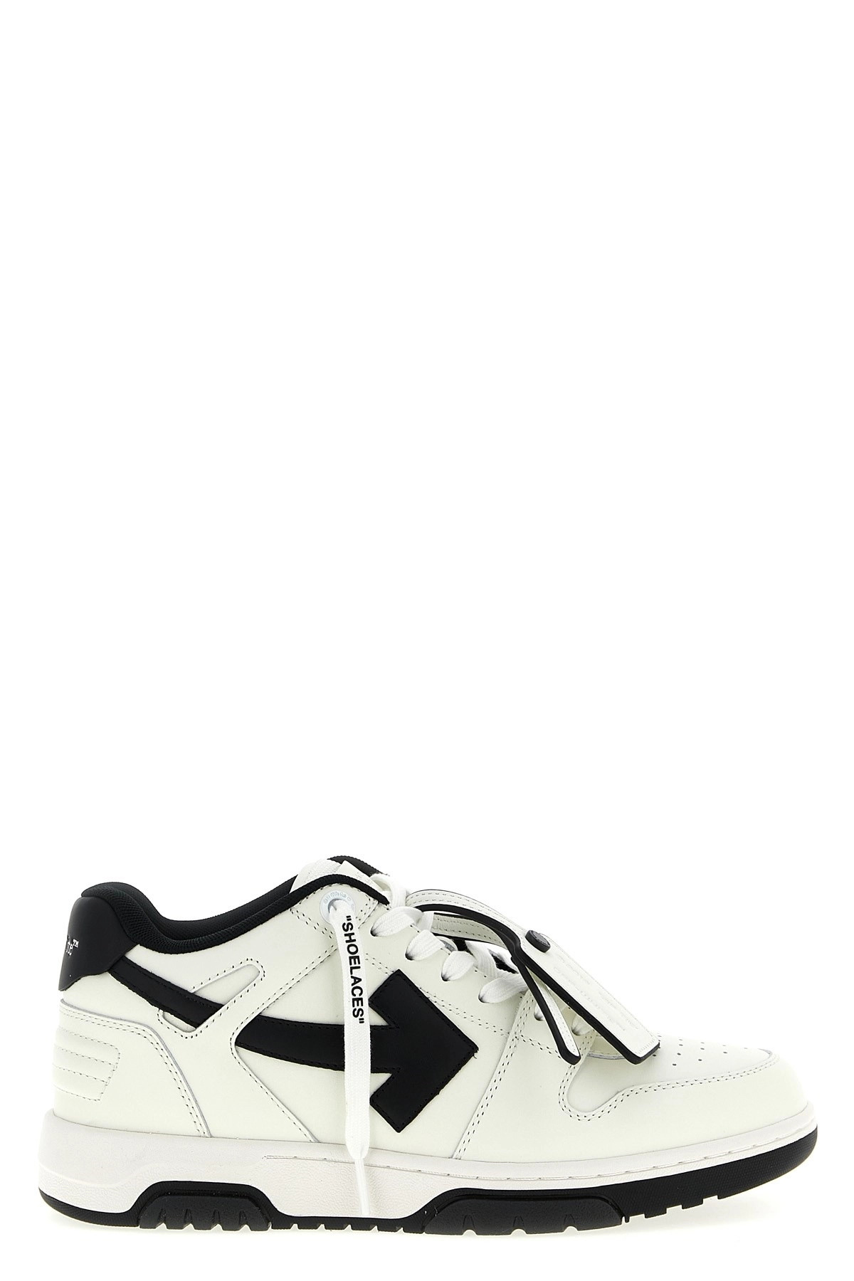 cod. OMIA189C99LEA01901100110 'Out Of Office' leather sneakers, logo tag, contrast 'Arrow' side heel and logo, laces, rubber sole. Color: White/Black Size & Fit: EU MEN Composition: 85% recycled polyester, 15% polyester Made in: China