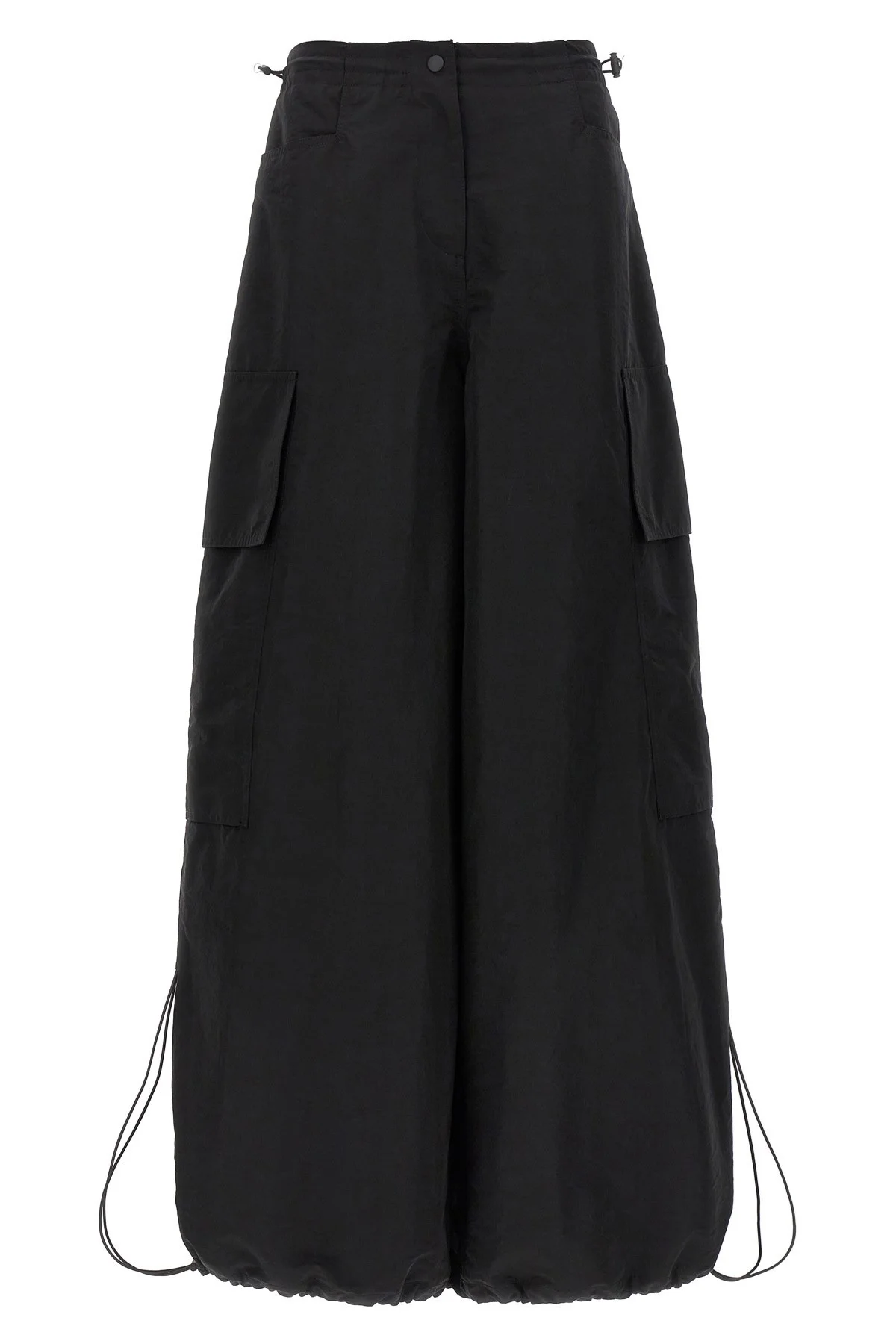 cod. PWCF009E23FAB00110101010 Parachute pants in nylon with zipper and button closure, adjustable elastic drawstring at the waist, pockets, and adjustable elastic cuffs with drawstring. Color: Black Size & Fit: true to size fit Composition: 59% pa, 41% pl Made in: Italy