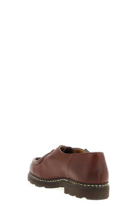 cod. 715603LISMARRON 'Michael' derby in greased nubuk, tray edged with ornamental relief, 2 eyelets, lace closure, model leather lining, Norwegian construction on rubber sole. Paraboot products undergo treatments that preserve the authenticity and freshness of the leather, patina may form when not in use, just remove it with a damp cloth. Color: Brown Size & Fit: EU MEN Composition: 100% calfskin leather (Bos Taurus) Made in: France