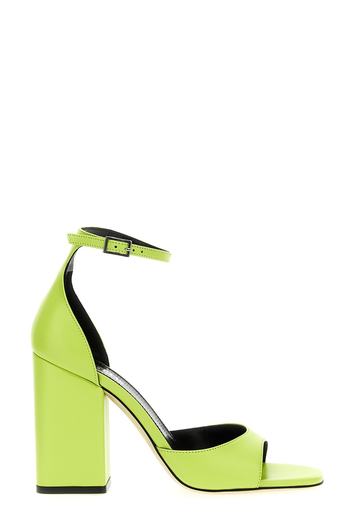 cod. PX982XLTH3ACID Fiona' leather sandals with straps and a loose heel. Color: Green Size & Fit: EU WOMAN Heels: 10 cm Composition: 100% lamb leather Made in: Italy