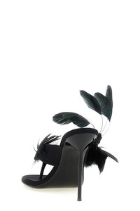Lidia Feather Thong silk mules