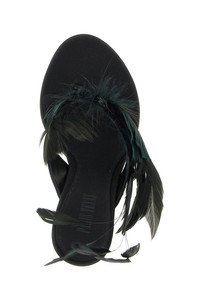 cod. PX1821XCRPFBLACK 'Lidia Feather Thong' mules in crepe satin, flip-flop style with decorative tone-on-tone feather application, ultra-thin coated herringbone heel, leather sole. Color: Black Size & Fit: EU WOMAN - Heels: 10.5 cm Composition: 100% silk Made in: Italy