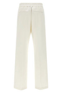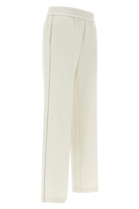 cod. A04968J006906002 Stretch cotton blend jersey pants with side metal 'Punto Luce' details, wide and straight leg, stretched pleat, elastic waistband, trompe l'oeil flap, pockets. Color: White Size & Fit: true to size fit Composition: 50% cotton 43% polyester 7% elastane Made in: Italy