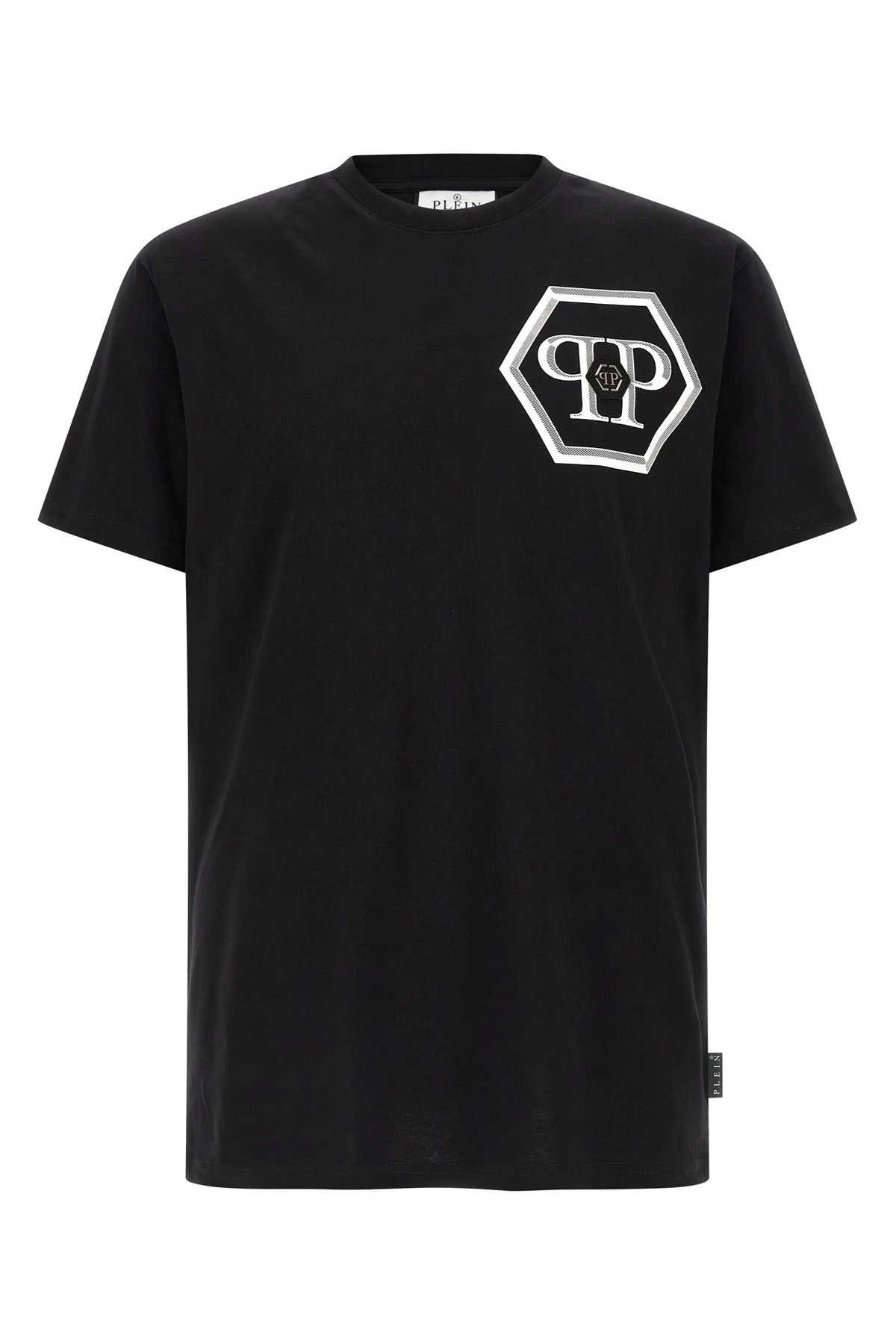 cod. SAFCMTK8886PJY002N02 Cotton T-shirt with 'Hexagon' print and logo on the front and back, front 'Hexagon' patch, crew neck, short sleeves. Color: Black Size & Fit: true to size fit Composition: 100% cotton Made in: Turkey