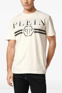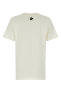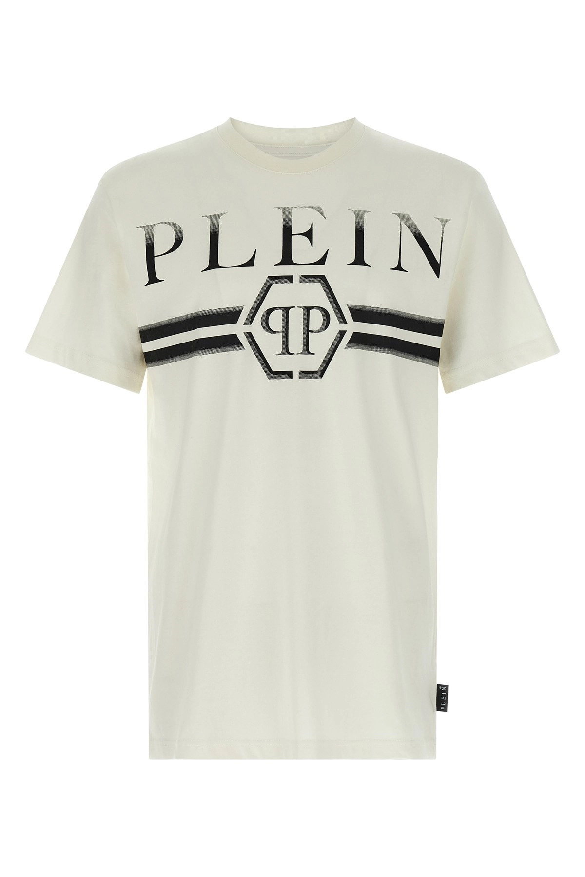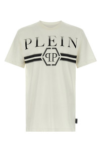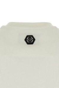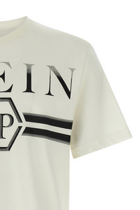 cod. FAECMTK8458PJY002N01OF 'Stripes' cotton jersey T-shirt with front print, leather patch with back metal logo, crew neck, short sleeves. Color: White Size & Fit: true to size fit Composition: 100% cotton Made in: Turkey