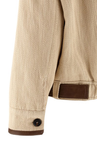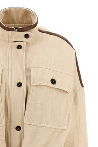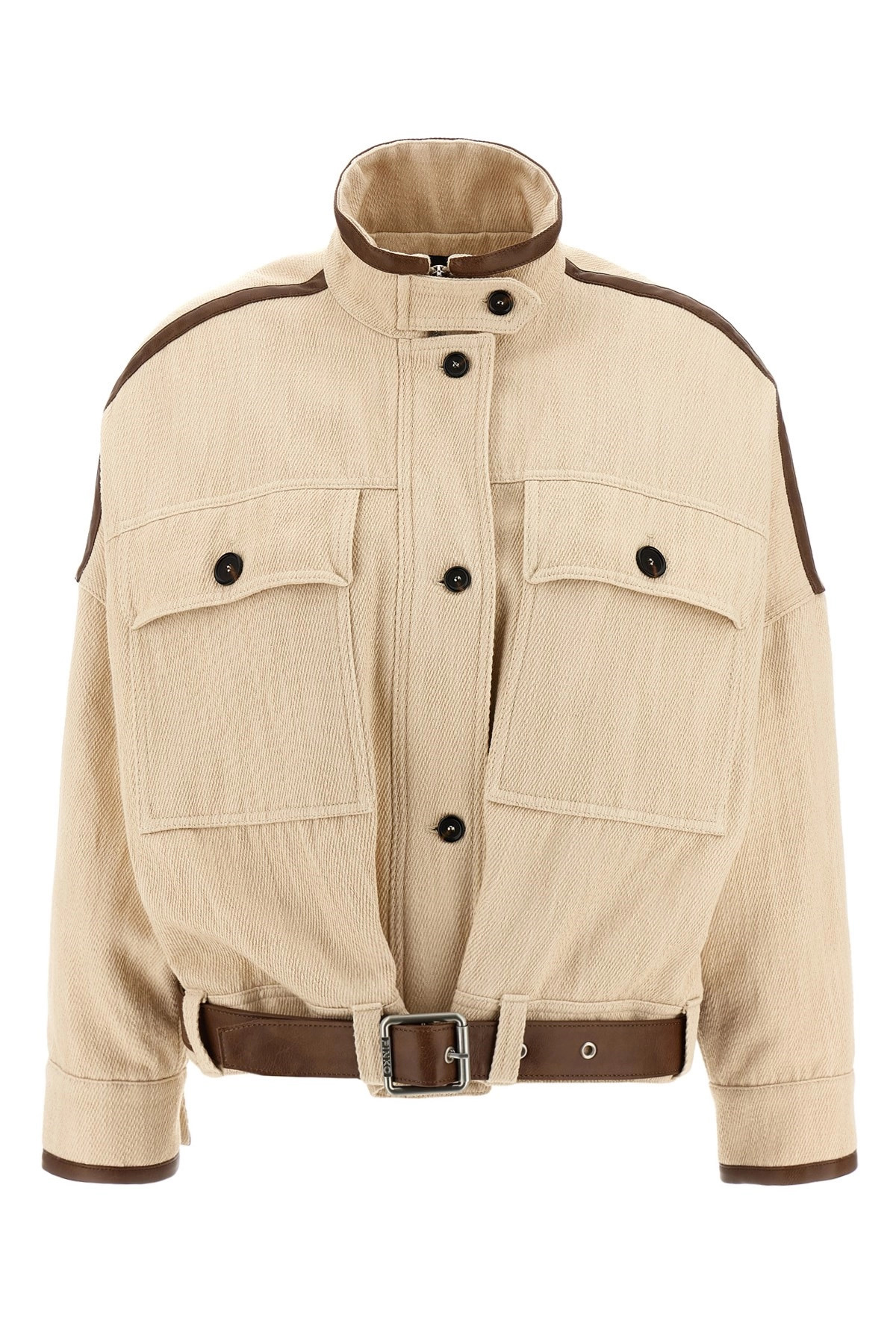cod. 104764A2FXC36 'Babilonia' blouson in diagonal cotton and linen blend fabric with leather-effect coated fabric piping, lined and slightly padded, standing collar, hidden zip and front button closure, pockets, long sleeves with cuffs and dropped shoulder, removable belt. Color: Beige Size & Fit: Comfort fit Composition: 65% co, 32% li, 3% pl Made in: Tunisia