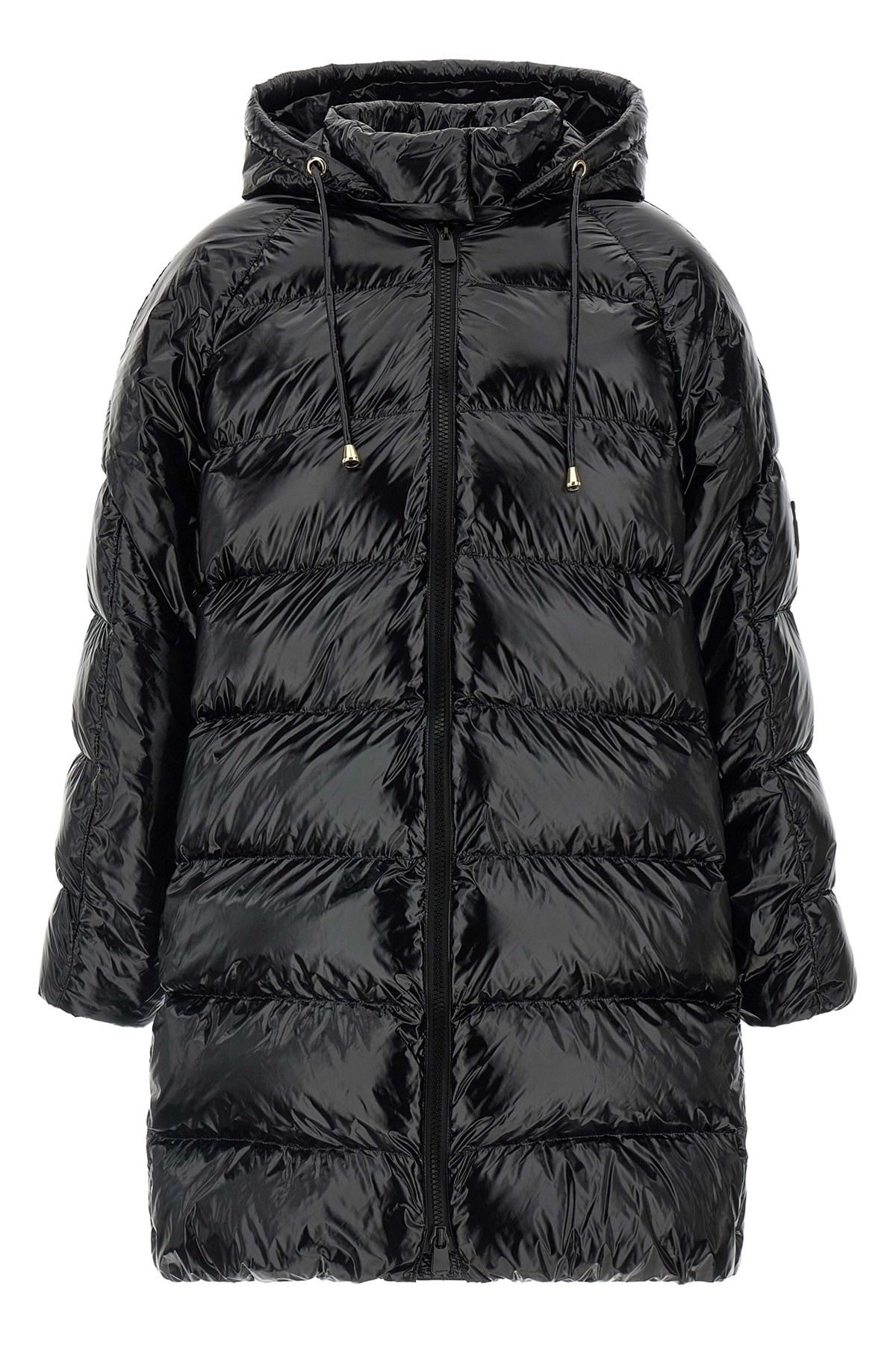 cod. 105335A00NZ99 Long 'Burro' quilted and padded nylon down jacket, adjustable and removable hood, high neck, front zip closure, pockets, long sleeves with tonal 'Love Birds' logo patch. Color: Black Size & Fit: true to size fit Composition: 100% polyamide Made in: China