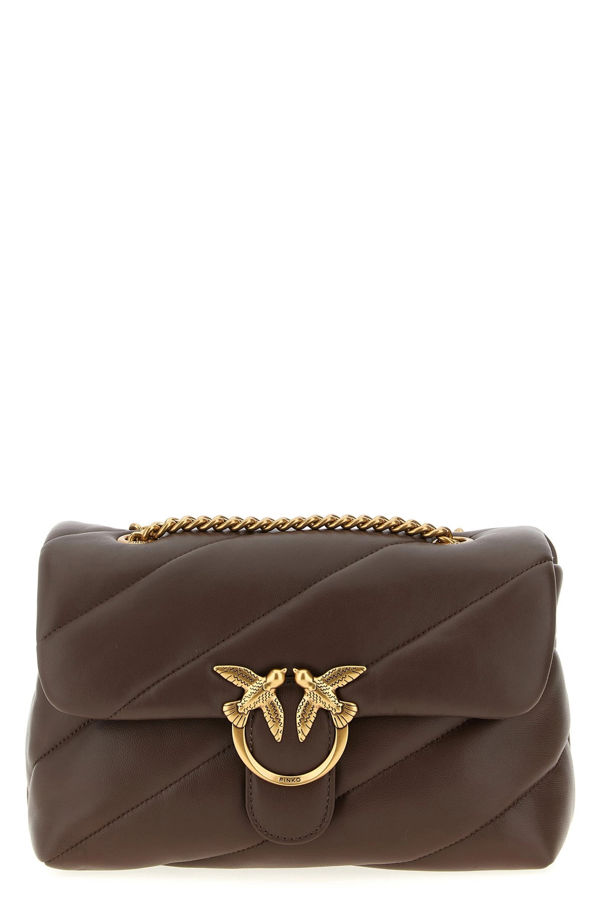 cod. 100038A0F2L74Q 'Classic Love Bag Puff' quilted leather crossbody bag with flap closure, front metal logo, chain to be carried over the shoulder. Color: Brown Size & Fit: W 27 x H 16 x D 7 cm Composition: 100% sheepskin Made in: China