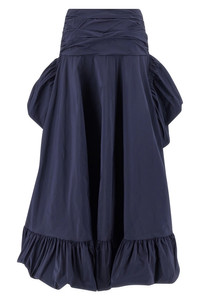 cod. 105642Y3LEG41 'Dondolo' taffeta miniskirt with slightly ruffled front, asymmetrical hem, ruffled piping, side zip closure. Color: Blue Size & Fit: true to size fit Composition: 100% polyester Made in: Tunisia