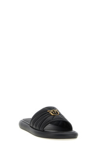 cod. SD0525P003Z99 'Fiona 03' quilted nappa leather slides with metal 'Love Birds Diamond Cut' logo on the front, rubber sole. Color: Black Size & Fit: EU WOMEN Composition: 100% Ovis Aries Made in: China