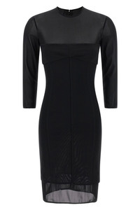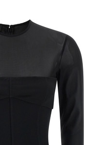cod. 105548A2Q3Z99 'Giostra' midi dress in stretch fabric with semi-transparent areas and a central double layer insert, crew neck, 3/4 sleeves, back zip closure. Color: Black Size & Fit: Slim fit Composition: 78% polyamide, 22% elastane Made in: Albania