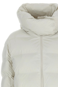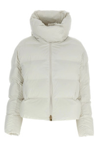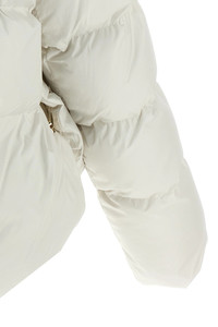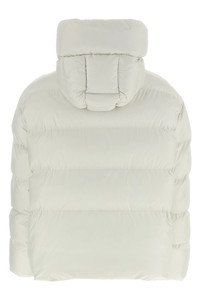 cod. 101602A2P6Z07 'Giza' cropped quilted technical canvas down jacket, high neck with snap button closure, adjustable hood, front zip closure, pockets, long sleeves with tone-on-tone logo embroidery, drawstring on the hem, side slits. Color: White Size & Fit: Boxy fit Composition: 100% polyester Made in: China