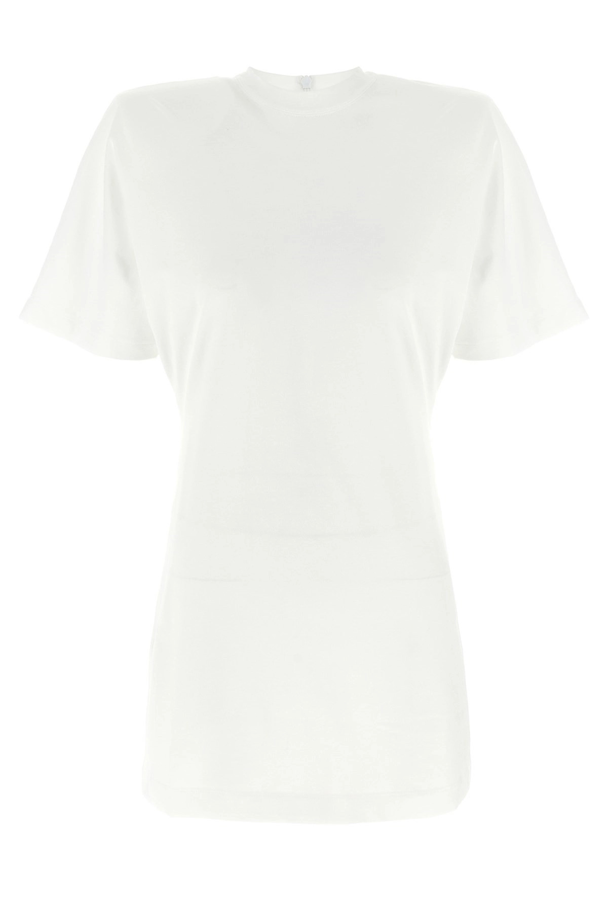 cod. 105220A2M2Z04 'Grady' pure cotton heavy jersey mini dress with removable extra padded shoulder straps, crew neck, short sleeves, back zip closure, belt. Color: White Size & Fit: true to size fit Composition: 100% cotton Made in: Italy