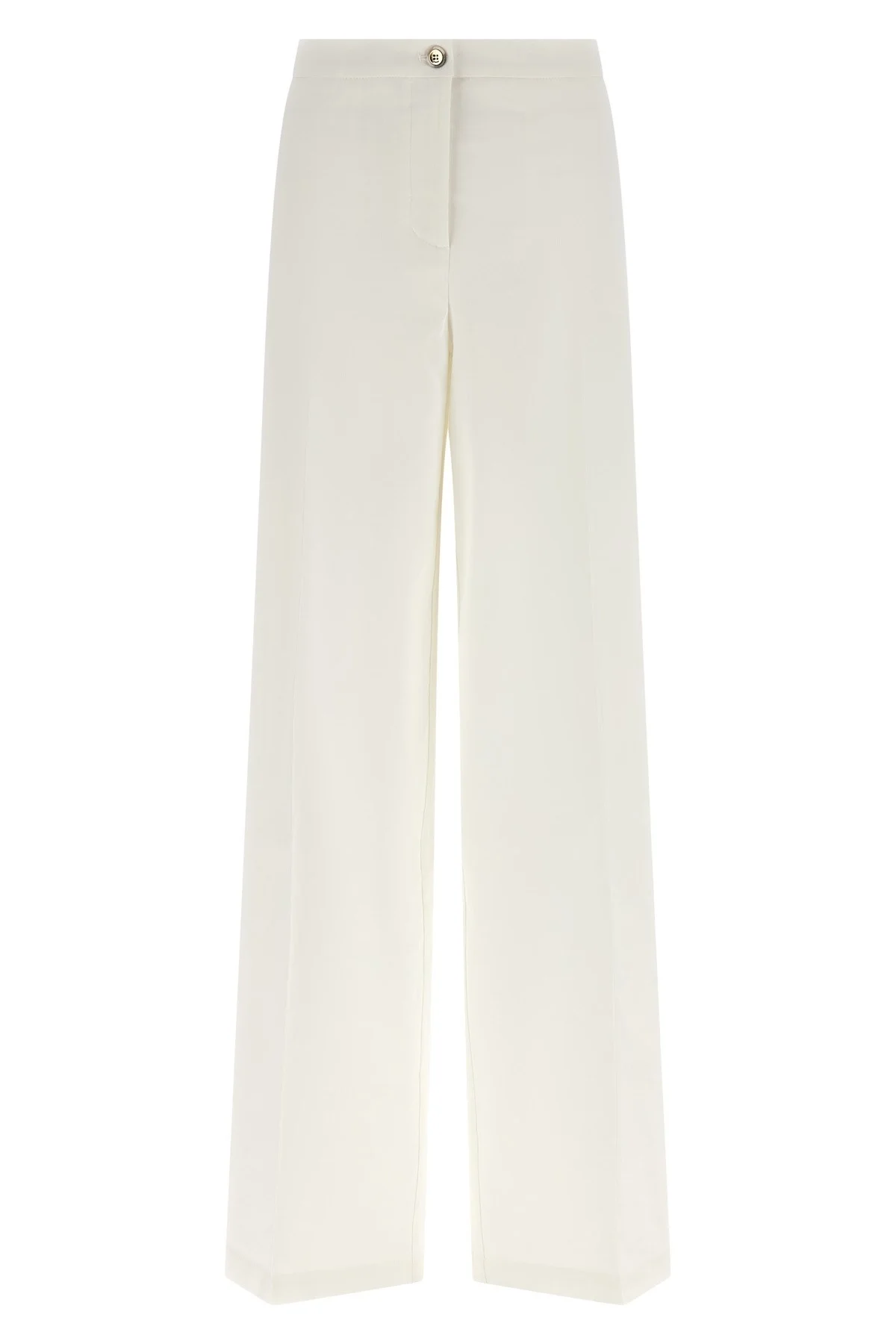 cod. 104929A34IZ05 'Jacopone' stretch linen pants, wide and straight leg, stretched pleat, front zip and button closure, front American pockets, back welt pockets. Color: White Size & Fit: true to size fit Composition: 60% li, 35% vi, 5% ea Made in: Italy
