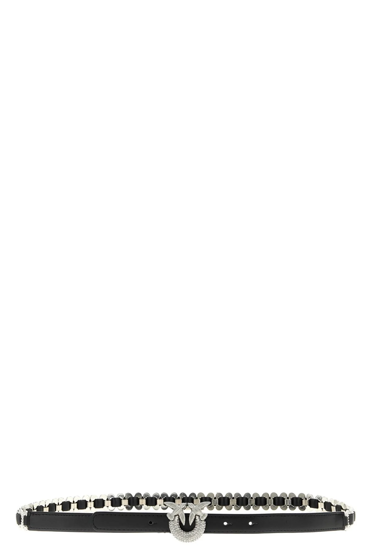 cod. 105892A2XHZ99N Leather belt with metal details, metal 'Love Birds' buckle with rhinestone applique. Color: Black Size & Fit: H 2 cm Composition: 100% leather Made in: Italy