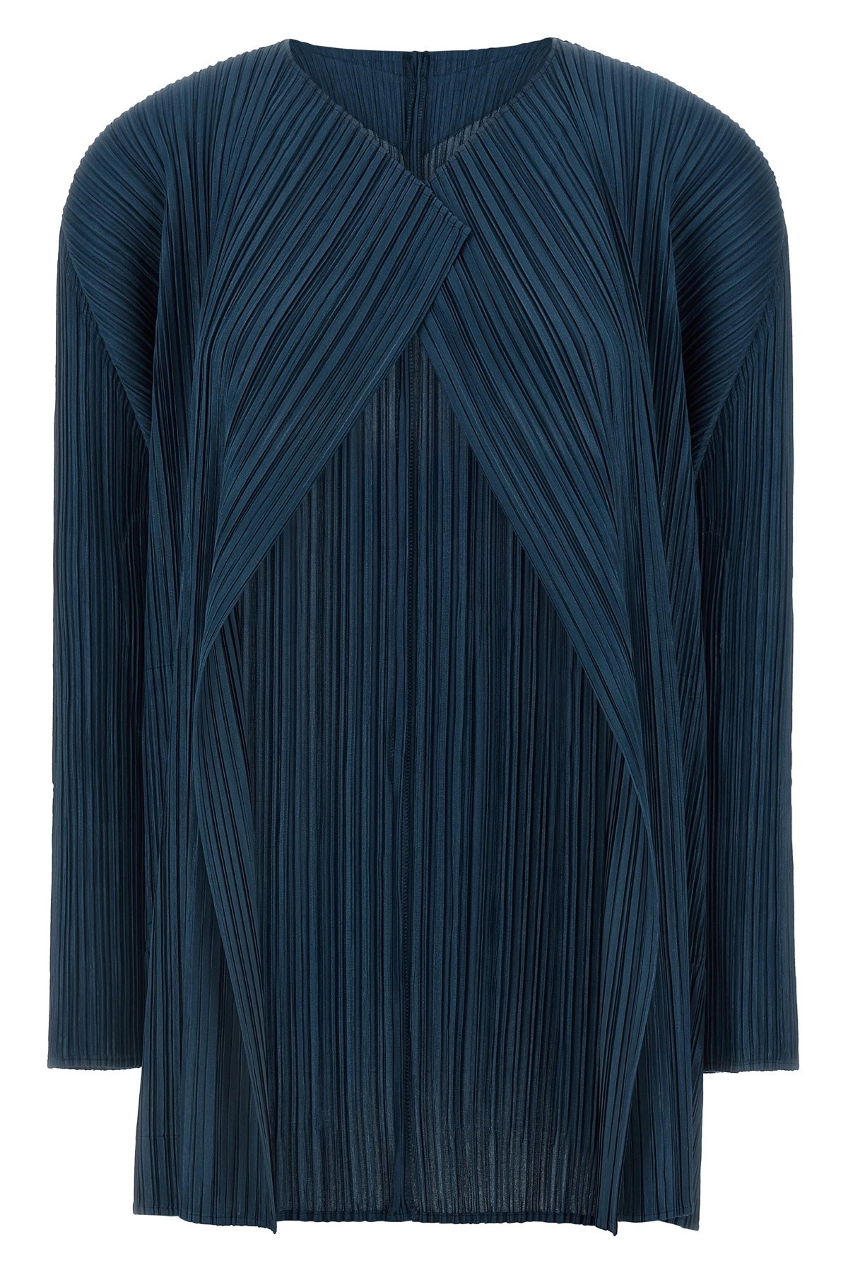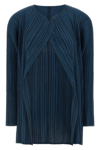cod. PP58JA28275 'Mellow Pleats' pleated cardigan with front opening, long sleeves, pockets. Color: Blue Size & Fit: comfort fit - JAPAN size Composition: 100% polyester Made in: Japan