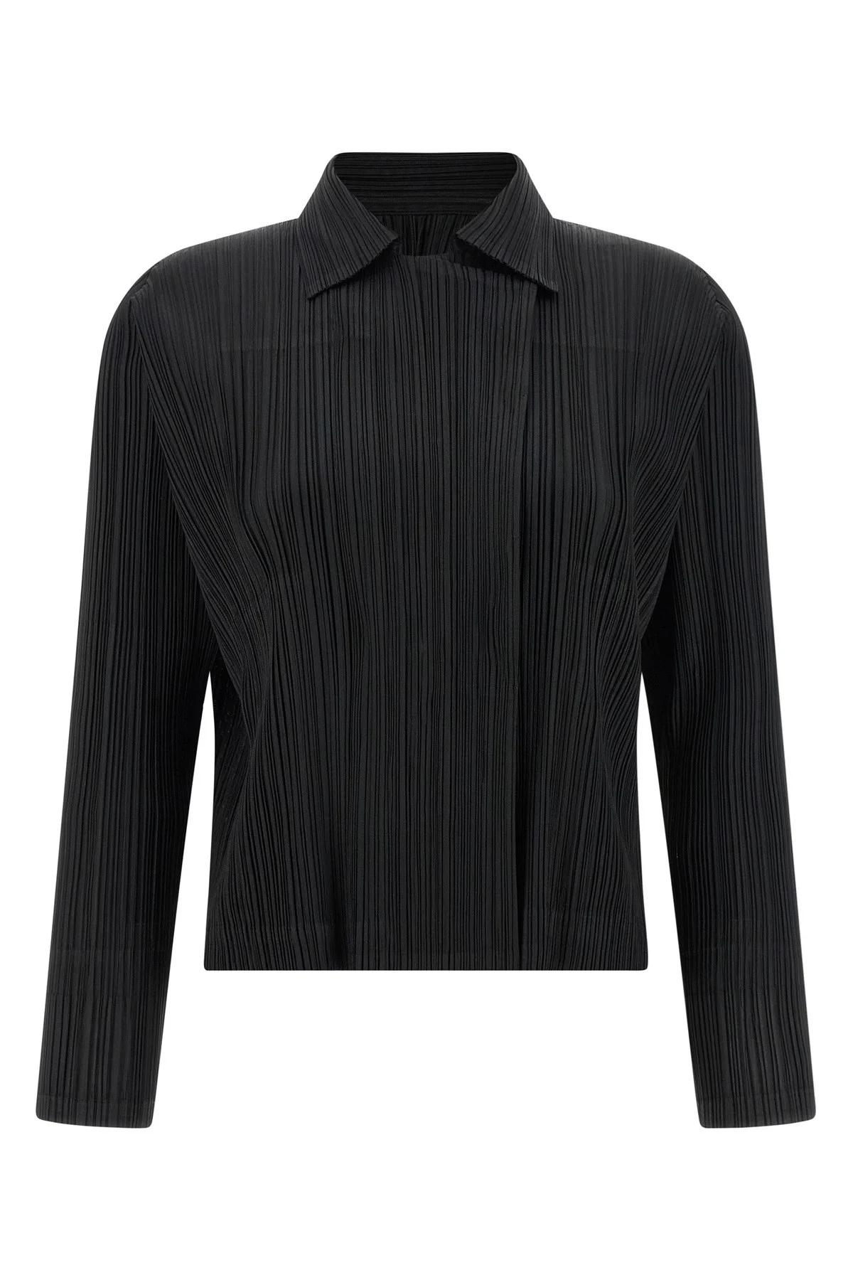 cod. PP66JD12215 Monthly Colors: February pleated jacket with shirt collar, concealed front button closure, pockets, long raglan sleeves. Color: Black Size & Fit: true to size fit - JAPAN size Composition: 100% polyester Made in: Japan