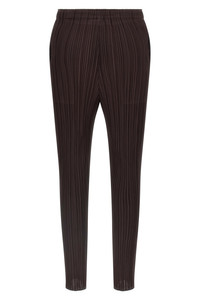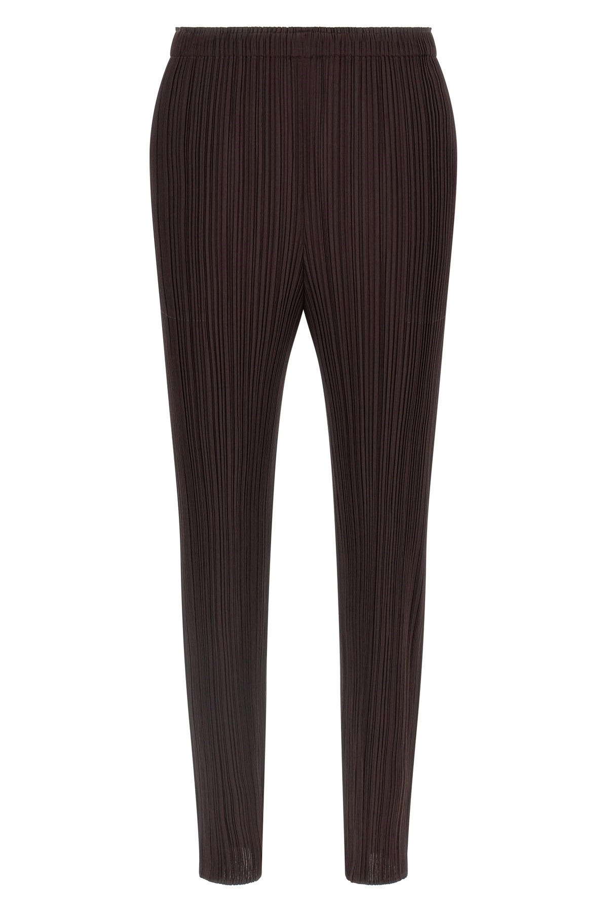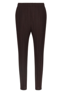 cod. PP58JF11547 'Monthly Colors: July' pleated pants, straight leg, slits at the bottom, side pockets, elastic waistband. Color: Brown Size & Fit: True to size fit Japan sizing Composition: 100% polyester Made in: Japan