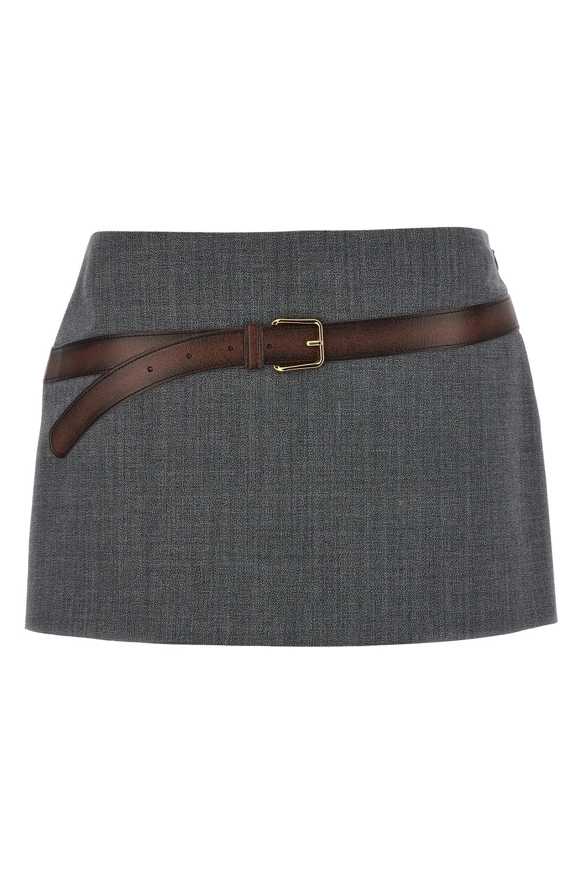 cod. P151WGSOOO16NOF0480 Technical wool mini skirt with 3D printed belt, lining, side zip closure. Color: Gray Size & Fit: true to size fit Composition: 55% polyester, 45% virgin wool Made in: Italy