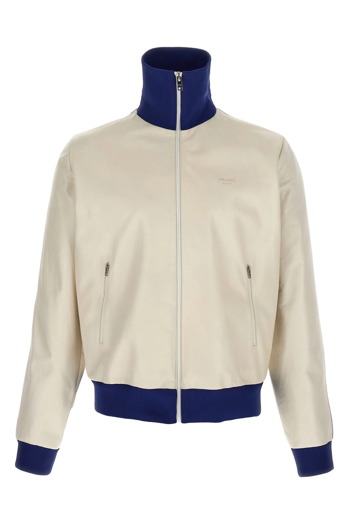 cod. UPW563SOOO17FHF0009 Nappa leather blouson with waxing treatment in the final and stretch ribbed knit details, embossed logo and front zip closure, high neck, pockets, long sleeves with cuffs, unlined. Color: White Size & Fit: true to size fit Composition: 100% lamb leather (Ovis aries) Made in: Italy