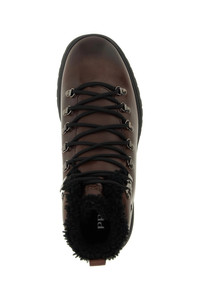 cod. 2TE201FA0003LJDF0192 'Brixxen' leather ankle boots with sheepskin lining, triangle logo in enameled metal on the side, lace-up closure, rubber sole. Color: Brown Size & Fit: UK MEN Composition: 100% calfskin leather (Bos Taurus) Made in: Italy