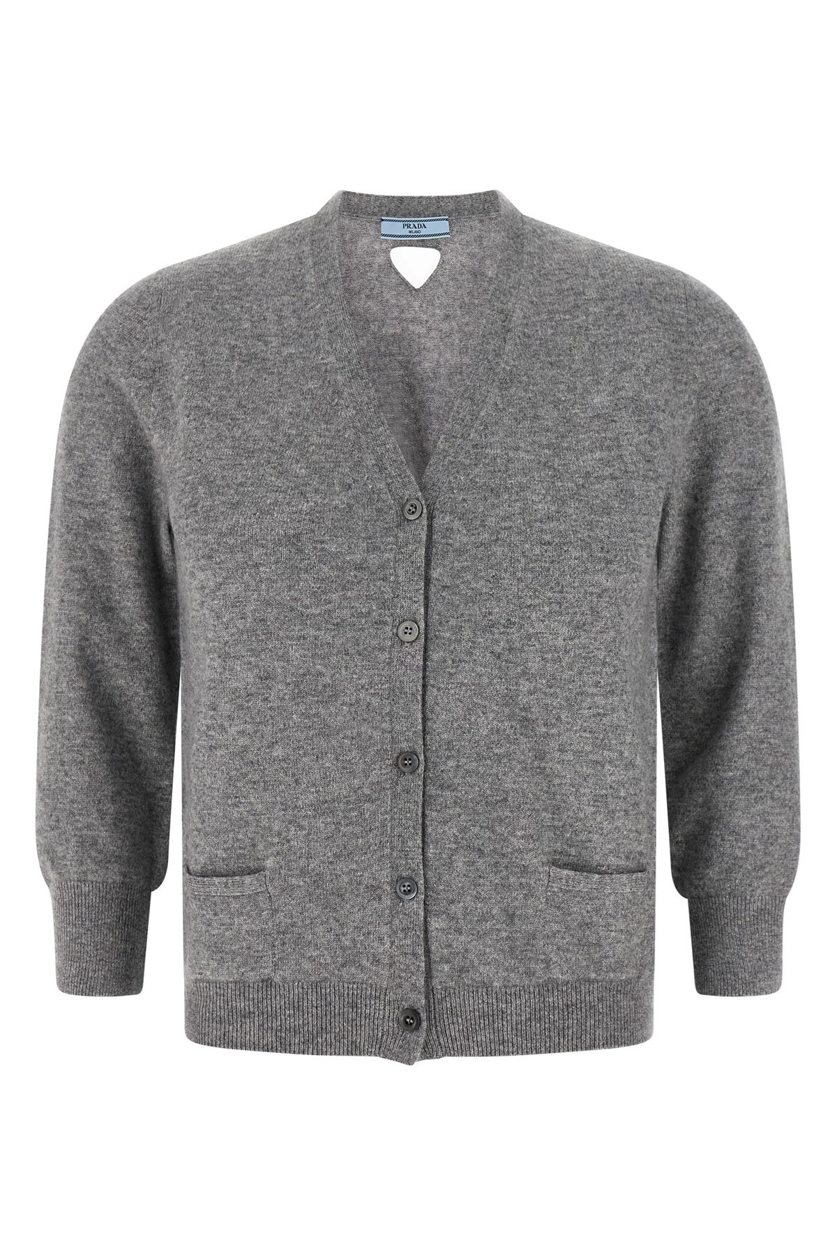 cod. P25N59SOOO17KCF0031 Cashmere cardigan, V-neck, button closure, pockets, cut out logo back detail, long cuffed sleeves. Color: Gray Size & Fit: True to size fit Composition: 100% cashmere Made in: Italy