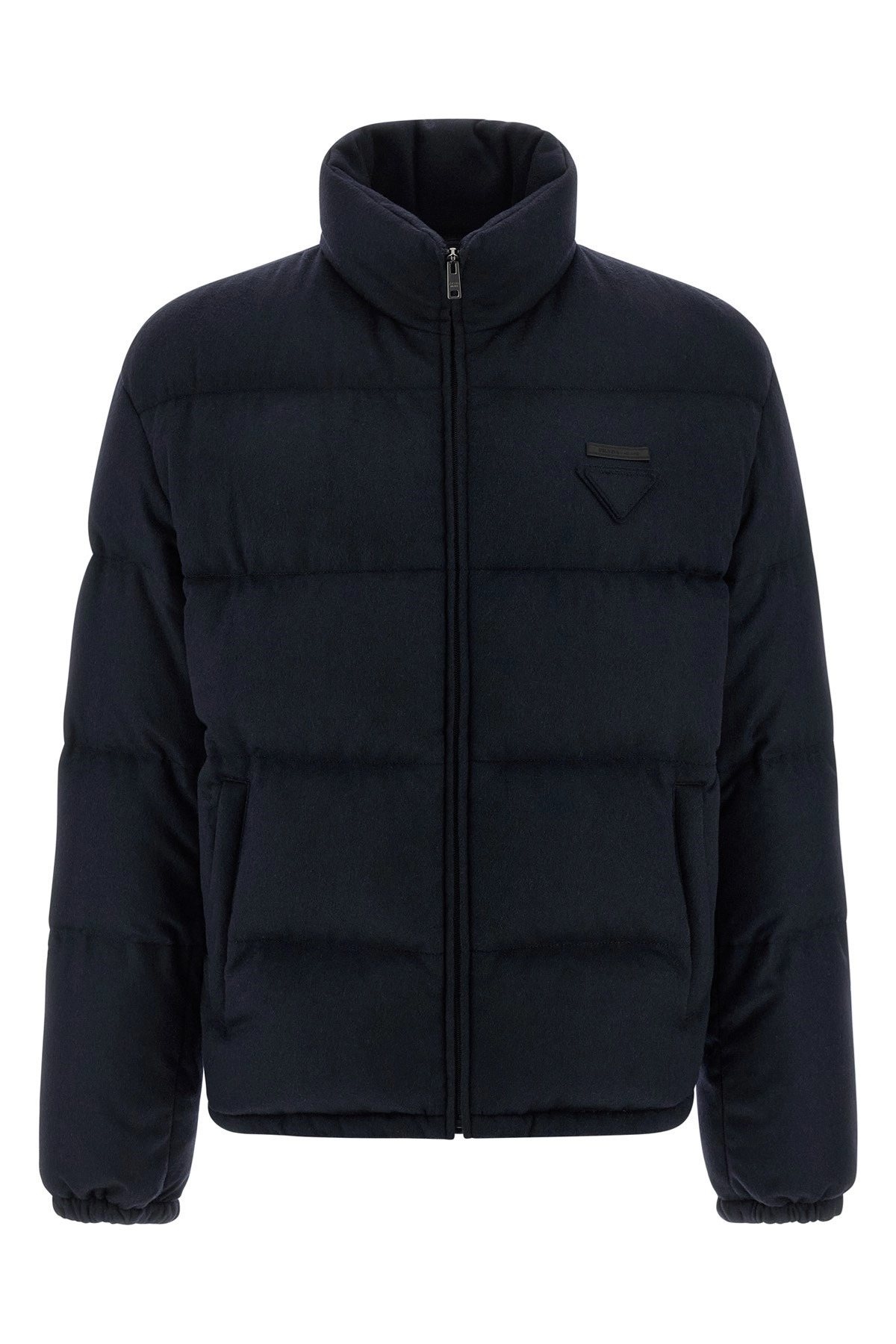 cod. SGC921SOOO17XTF0008 Quilted cashmere down jacket with goose feather padding, triangle logo in tone-on-tone fabric and front zip closure, standing collar, pockets, long sleeves with elastic cuffs, drawstring on the hem. Color: Blue Size & Fit: true to size fit Composition: 100% cashmere Made in: Italy PROMO CODE NOT APPLICABLE