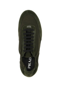 cod. 2EG479FG001D7CF0334 'Collapse' Re-Nylon and suede sneakers with vintage finish, front embossed logo, lace-up closure, rubber sole. SUSTAINABLE: This product is made with Re-Nylon, a regenerated yarn made from recycled and purified plastic collected in oceans, fishery nets and textile fibers. Color: Green Size & Fit: PRADA SIZE SNEAKERS Composition: 100% recycled polyamide Made in: Italy PROMO CODE NOT APPLICABLE