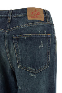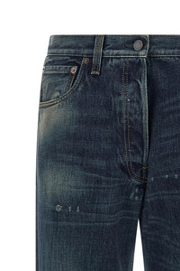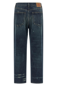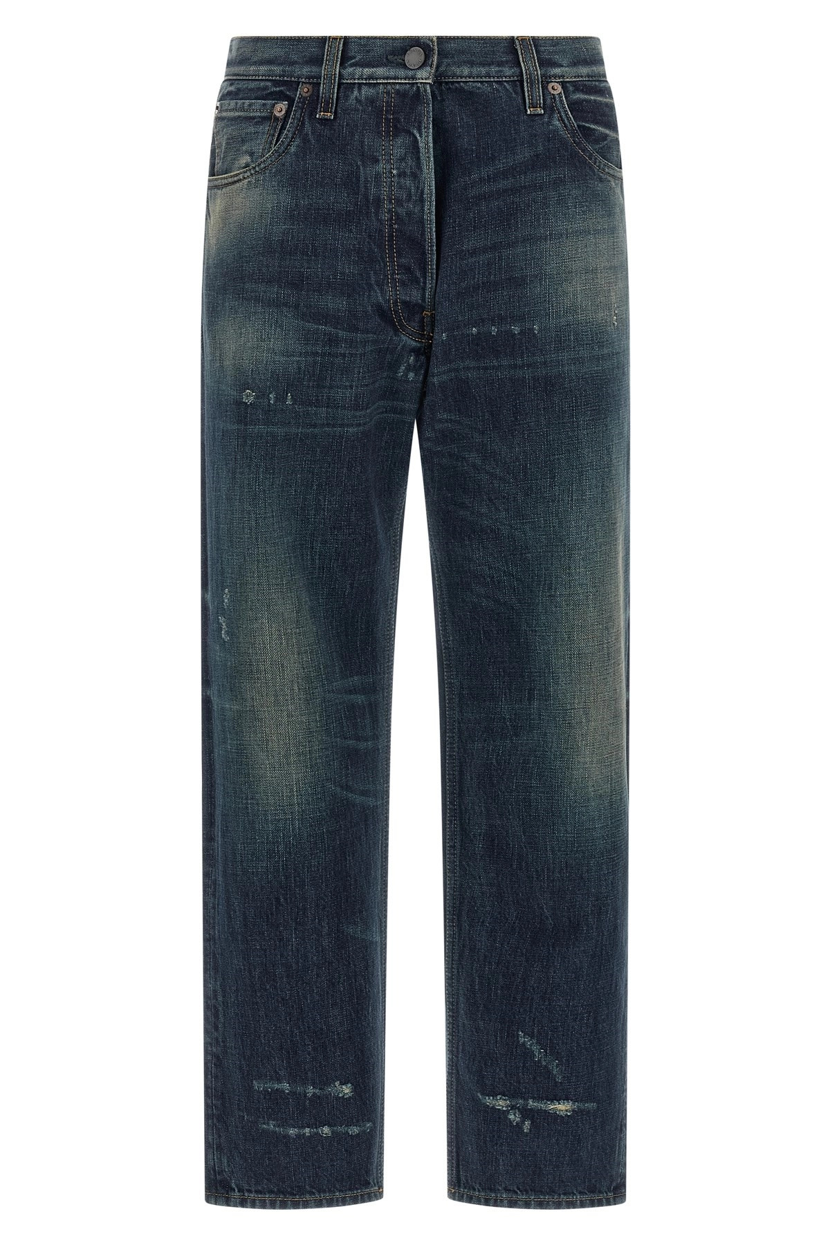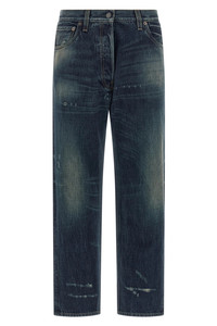 cod. GFP536SOOO1631F0008 Stonewashed cotton denim jeans with used and distressed effect, contrast stitching, straight leg, front button closure, five pockets, back logo tag. Color: Blue Size & Fit: true to size fit Composition: 100% cotton Made in: Italy