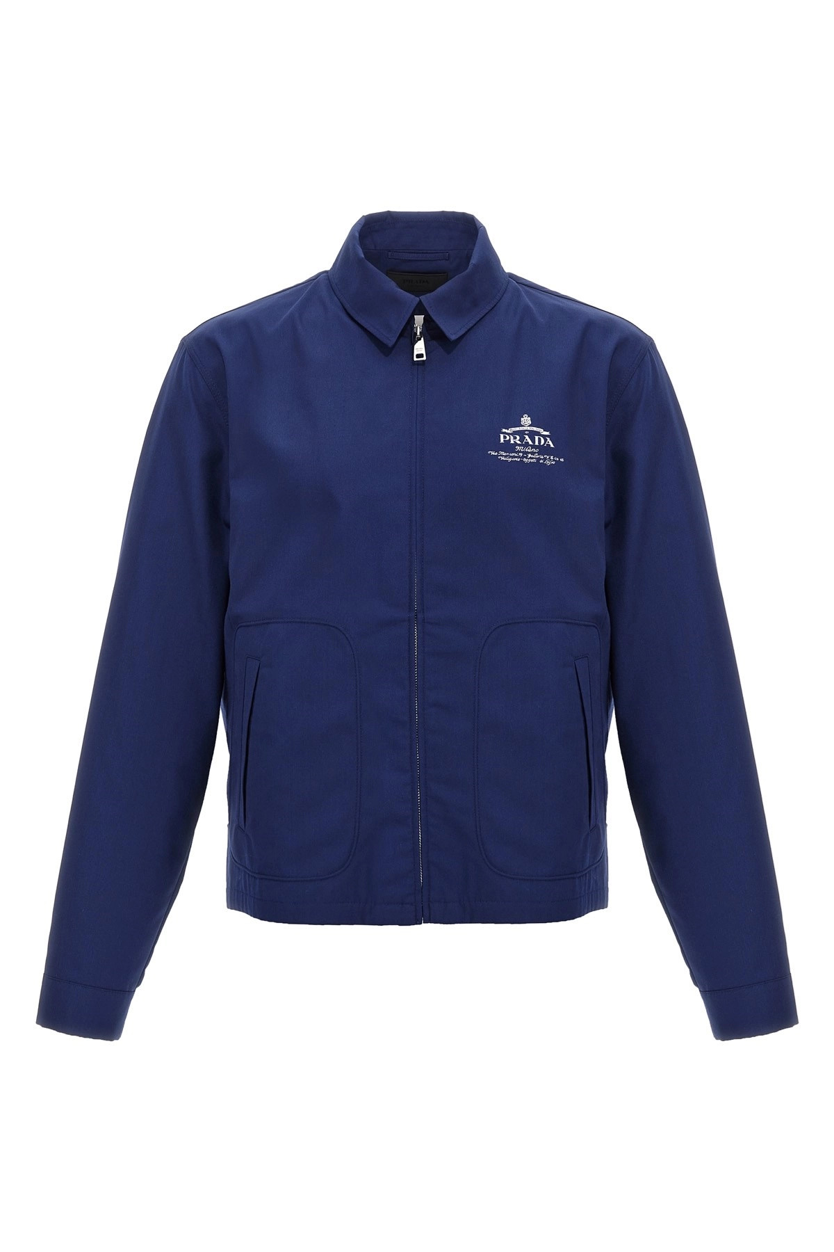 cod. SGC629SOOO1480F0216 'Divisa' cotton blend jacket with vintage-effect logo print on the front, zip closure, pockets, long cuffed sleeves. Color: Blue Size & Fit: true to size fit Composition: 65% polyester, 35% cotton Made in: Italy