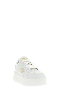 cod. 1E792MFD0503LPHF0009 'Downtown Bold' openwork leather sneakers with embossed logo tongue, enameled metal triangle logo on the side, lace-up closure, rubber platform sole. Color: White Size & Fit: EU WOMAN - Heel: 5 cm Composition: 100% calfskin leather (Bos Taurus) Made in: Italy