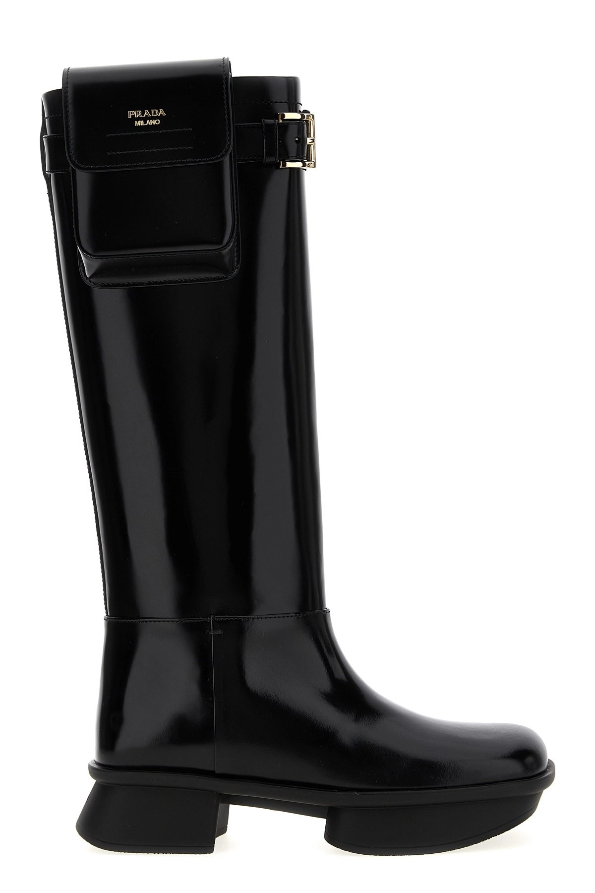 cod. 1W983NFD040055F0002 'Equal' brushed leather boots, monobloc rubber sole, strap with removable pouch. Color: Black Size & Fit: EU WOMEN Composition: 100% calfskin leather (Bos Taurus) Made in: Italy
