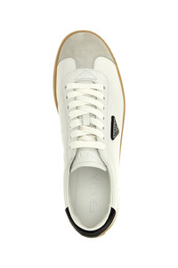 cod. 2EE394FG000Y5TF0964 'Lane' leather and suede sneakers with contrast details, lace-up closure, enameled metal triangle logo on the side, rubber sole. Color: White/Black Size & Fit: PRADA SIZE SNEAKERS Composition: 100% lamb leather (Ovis aries) Made in: Italy