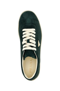 cod. 2EE394054F0422 'Lane' suede sneakers with triangle logo in enameled metal on the side, lace-up closure, rubber sole. Color: Green Size & Fit: PRADA SIZE SNEAKERS Composition: 100% cow leather (Bos Taurus) Made in: Italy