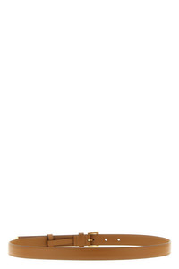 cod. 1CC6258NQF03CW Leather belt, metal buckle, triangle logo in enamelled metal. Color: Brown Composition: 100% calfskin leather (Bos Taurus) Size&Fit: H 2.2 cm