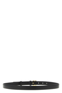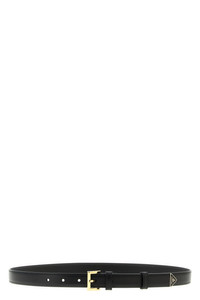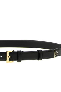 cod. 1CC6258NQF0632 Leather belt, metal buckle, triangle logo in enamelled metal. Color: Black Composition: 100% calfskin leather (Bos Taurus) Size&Fit: H 2.2 cm