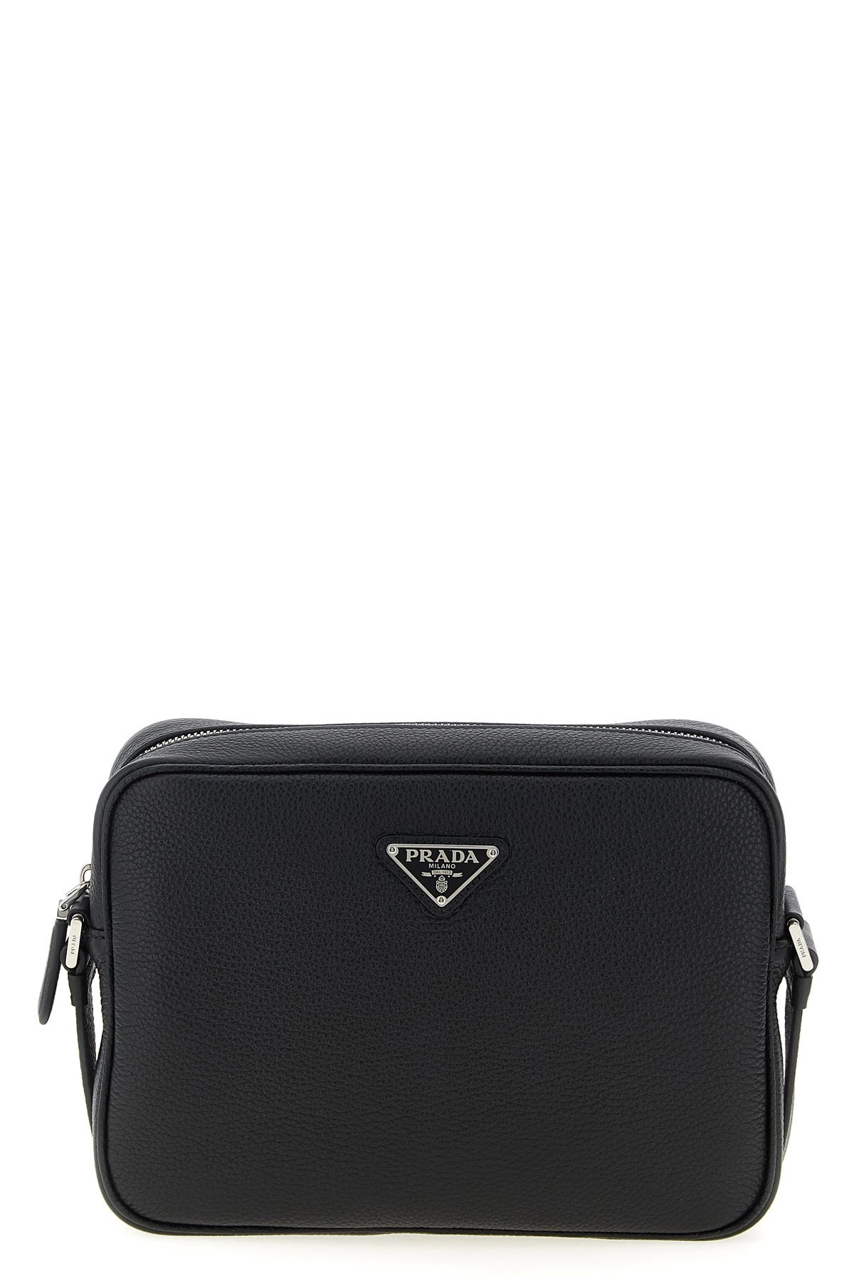 cod. 2VH189VOOO2BBEF0002 Garnet leather shoulder strap, front enameled metal triangle logo, top zip closure, adjustable shoulder strap. Color: Black Size & Fit: W 26 x H 19 x D 7.5 cm Composition: 100% calfskin leather (Bos Taurus) Made in: Italy