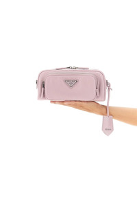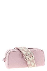 cod. 1BH198V400F0E18 Antique nappa leather crossbody bag with triangle metal enameled logo application, a zip closure, outer zip pocket, an adjustable and removable shoulder strap and a leather logo tag. Color: Pink Size&Fit: W 22 x H 11 x D 8 cm PROMO CODE NOT APPLICABLE