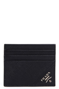 cod. 2MC223QMEF0002 Prada saffiano leather card holder with triangle logo. Color: Black Size & Fit: W 10 x H 8 cm Composition: 100% calf leather (bos taurus) Made in: Italy