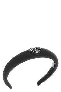 cod. 1IH0802DMIF0002 Nylon headband with triangular enamelled metal logo detail. Color: Black Size & Fit: One size Composition: 100% recycled polyamide Made in: Italy PROMO CODE NOT APPLICABLE