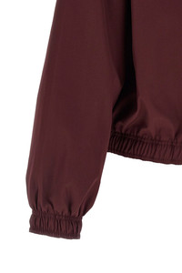 cod. P8044SOOO187PF0403 Poplin jacket, unlined, pocket with triangle logo in enamelled metal, front zip closure, shirt collar, long sleeves with elastic cuffs, elastic and drawstring on the hem. Color: Bordeaux Size & Fit: Comfort fit Composition: 65% polyester, 35% cotton Made in: Italy