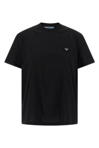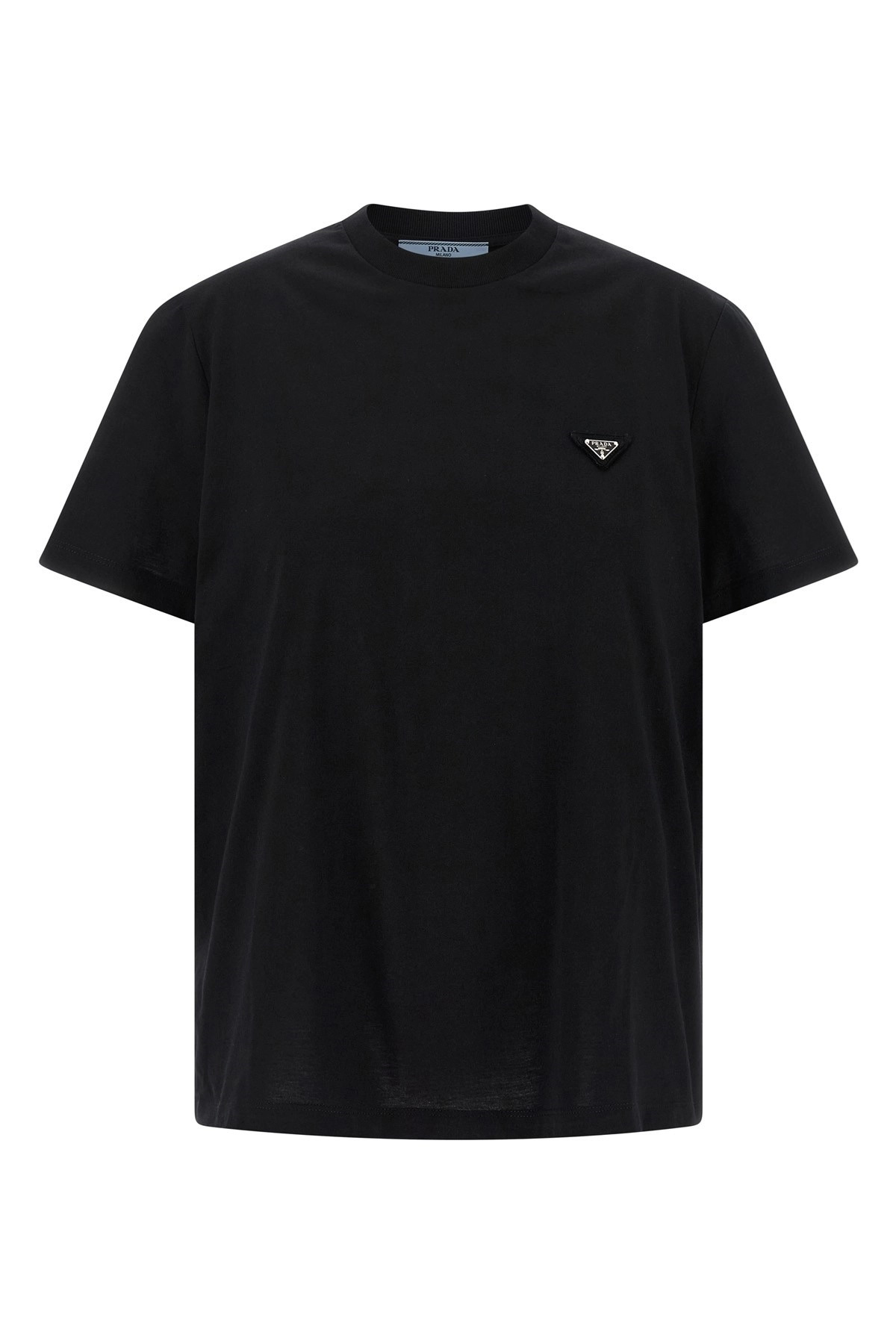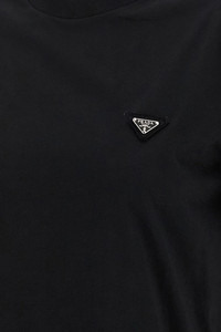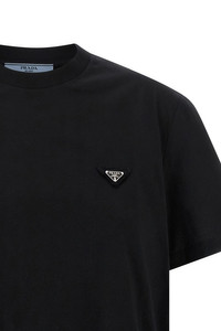 cod. 35838SOOO15ZGF0002 Used-effect cotton T-shirt, front enameled metal triangle logo, crew neck, short sleeves. Color: Black Size & Fit: Relaxed fit Composition: 100% cotton Made in: Romania