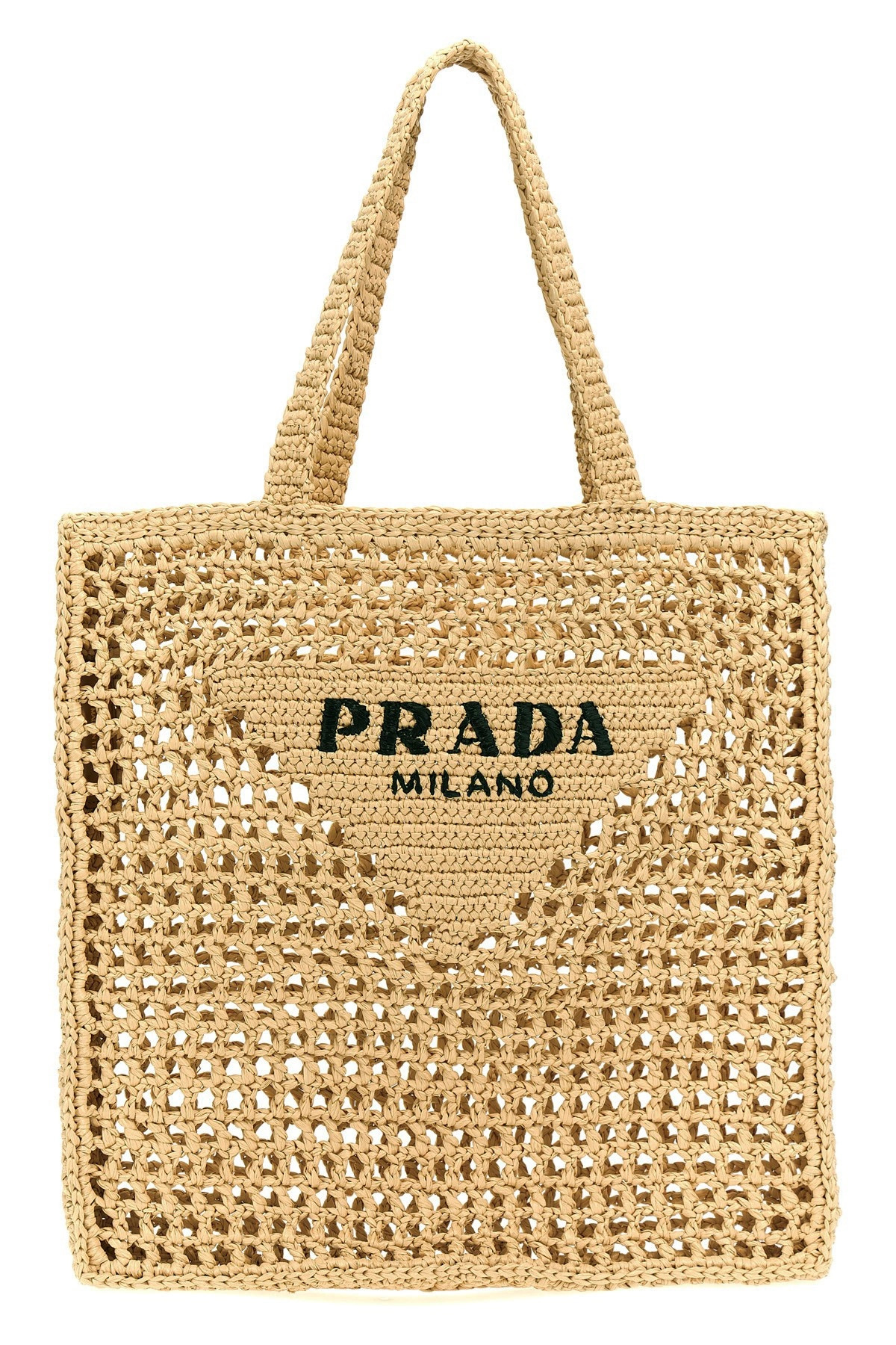 cod. 1BG393VOOO2C2TF0018 Shopping bag in raffia-effect woven fabric, logo embroidery, double handle. Color: Beige Size & Fit: W 36 x H 38 x D 3 cm Composition: 100% raffia PROMO CODE NOT APPLICABLE
