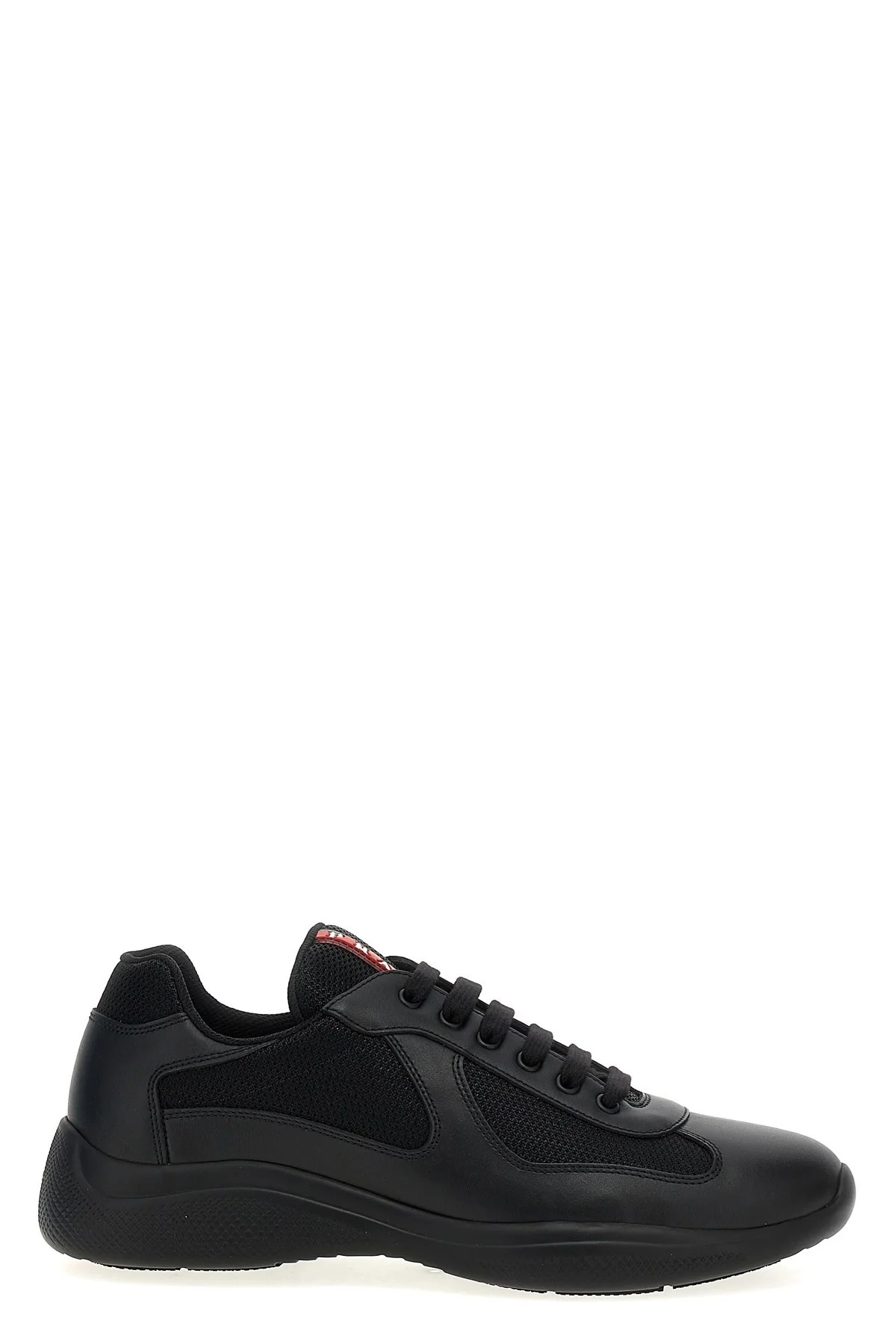 cod. 4E3400FG0006GWF0002 'New america's Cup' leather sneakers with mesh inserts, lace-up closure, logo on the tongue, rubber sole. Color: Black Size & Fit: PRADA SIZE SNEAKERS Composition: 100% polyamide Made in: Italy