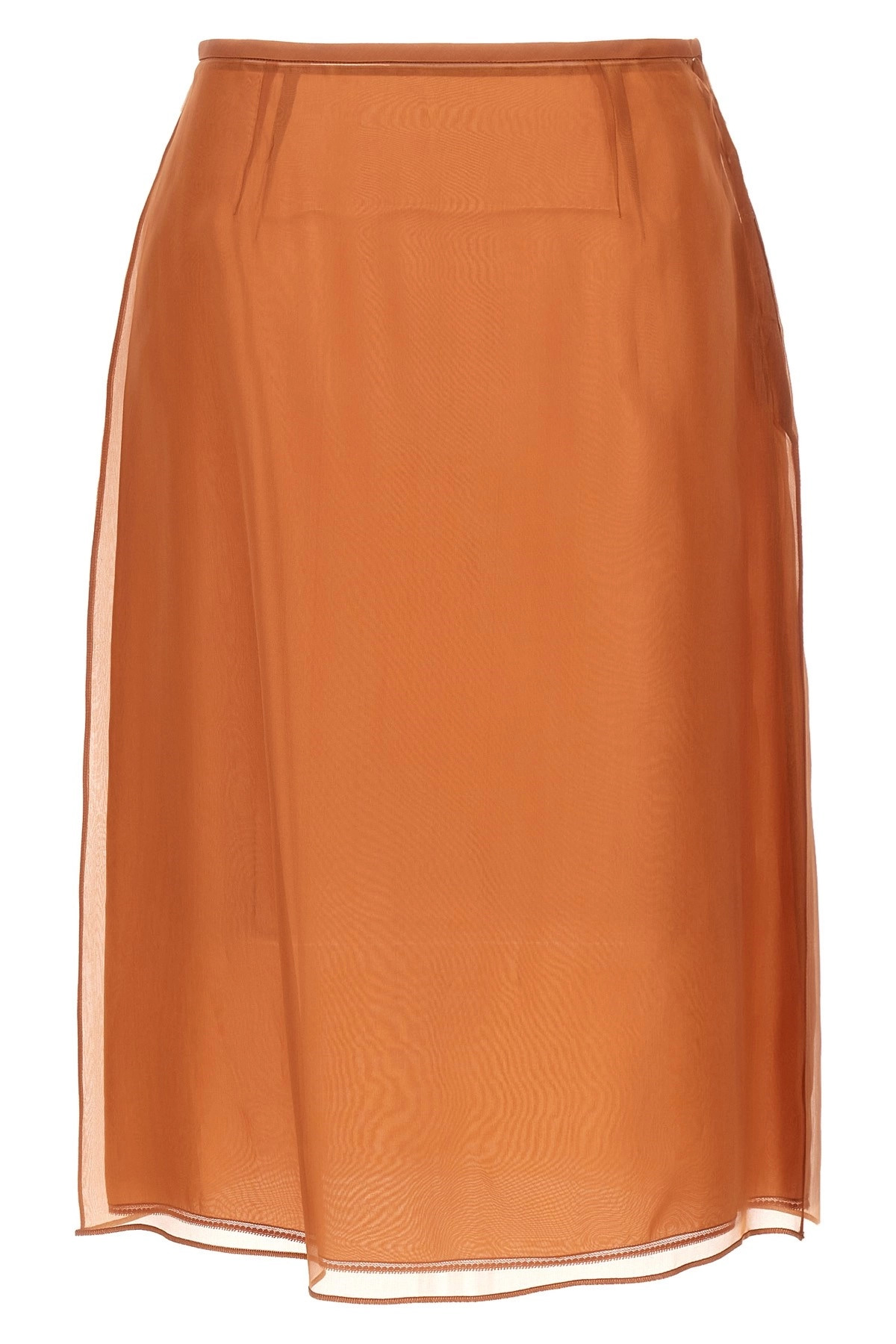 cod. P123JSOOO1344F0033 Organza skirt, lined, side button closure. Color: Brown Size & Fit: true to size fit Composition: 100% silk
