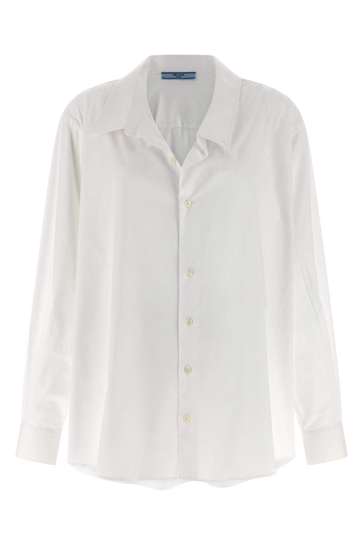 cod. P480ISOOO1XV2F0009 Poplin shirt, silhouette with deliberately imperfect elements, triangle logo in tone-on-tone fabric on the back, front button closure, long sleeves with cuffs. Color: White Composition: 100% cotton Made in: Italy