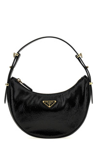 cod. 1BC194VOOO2DNTF0002 'Prada Arque' naplak patent leather shoulder bag, zip closure, front enameled metal triangle logo, adjustable and removable handle, adjustable and removable shoulder strap. Color: Black Size & Fit: W 22.5 x H 18.5 x D 6 cm Composition: 100% lamb leather (Ovis aries) Made in: Italy
