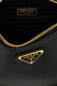 cod. 1BH204VV2PNZVF0632 'Prada Re-Edition 2005' shoulder bag in Saffiano leather with front enameled metal triangle logo, top zip closure, fabric shoulder strap with adjustable and removable jacquard logo, removable chain handle, removable pouch, removable leather and metal key ring. Color: Black Size & Fit: W 22 x H 13 x D 6 cm Composition: 100% calfskin leather (Bos Taurus) Made in: Italy